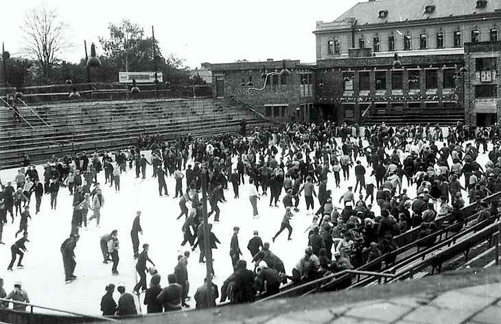 1950-е. Йиглава. Горацки стадион. Сеанс массового катания