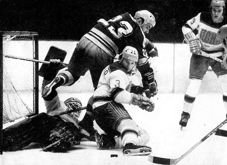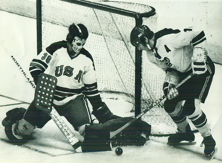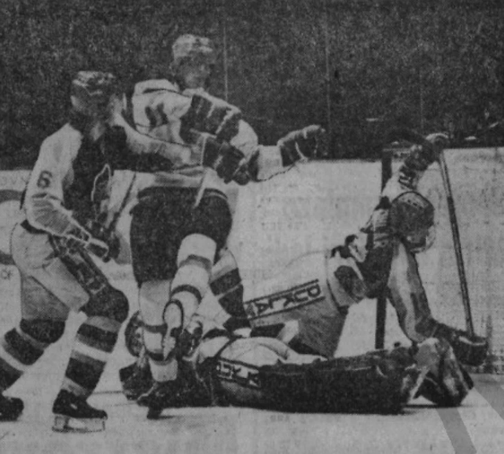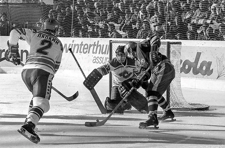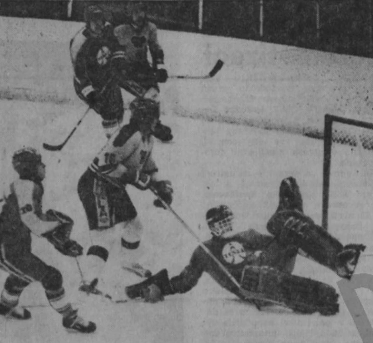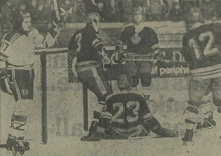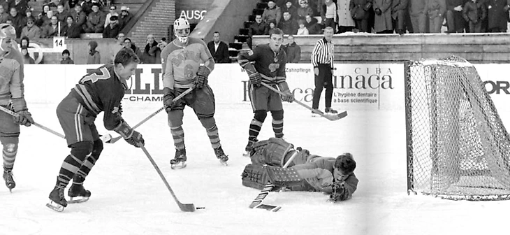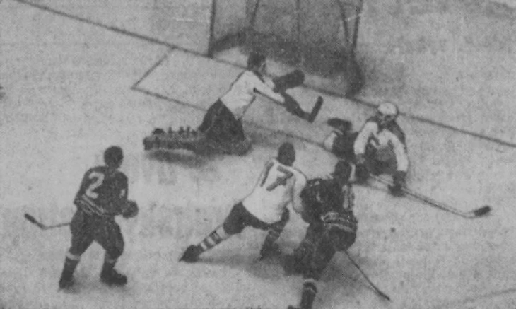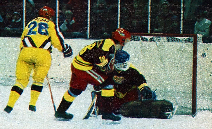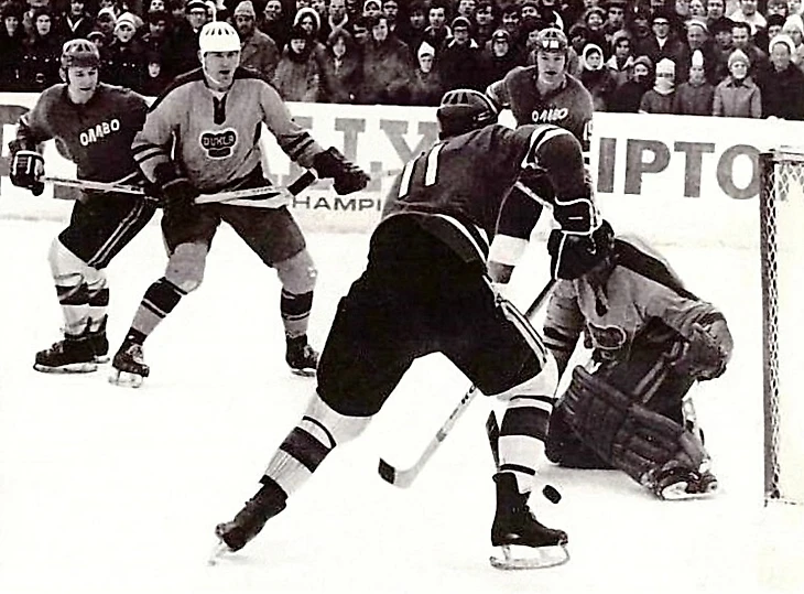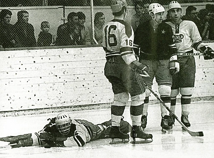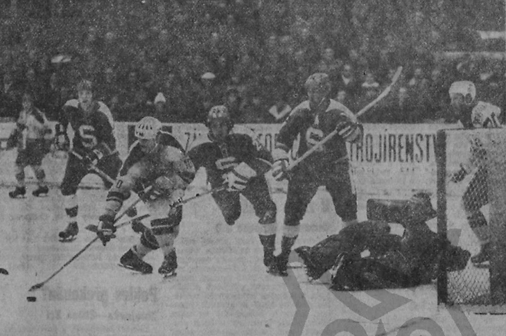 31 декабря 1969 года. Давос. Кубок Шпенглера. «Локомотив» (Москва) - «Дукла» (Йиглава) - 2:1. Игра у ворот Марцеля Сакача (№ 6)