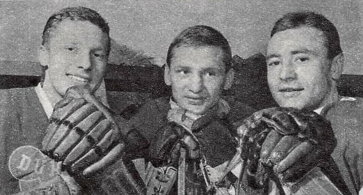 1961. «Дукла» (Йиглава). Вратарь Милош Подгорски и защитники Камил Свойше (слева) и Карел Масопуст