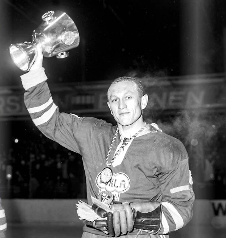 31 декабря 1965 года. Давос. Кубок Шпенглера. Капитан йиглавской «Дуклы» Станислав Невеселы с кубком