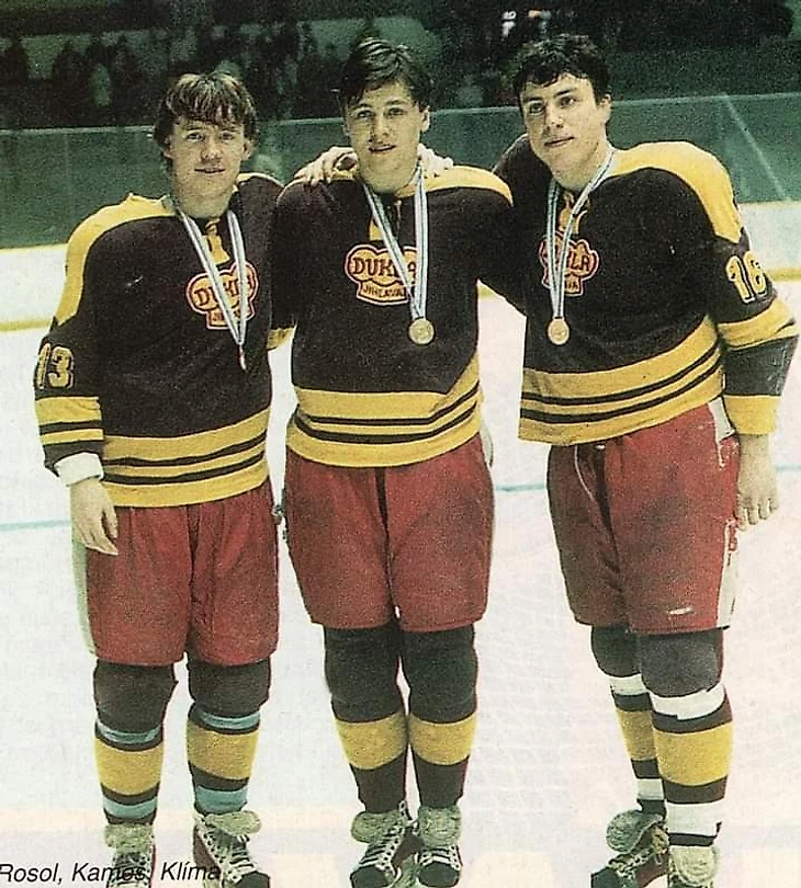 «Дукла» (Йиглава). Петр Росол (№ 13), Владимир Камеш и Петр Клима (№ 16) - 80 шайб на троих в сезоне 1984/85