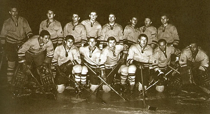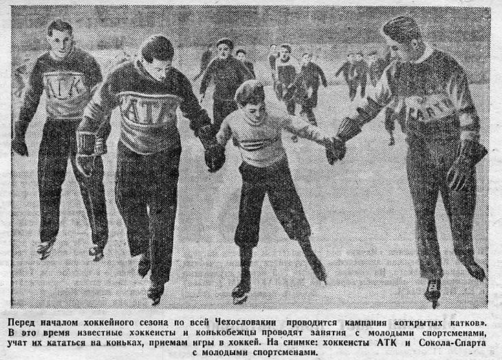 Декабрь 1951 года. Хоккеисты пражских команд АТК и «Спарта ЧКД Соколово» проводят занятия с молодыми спортсменами