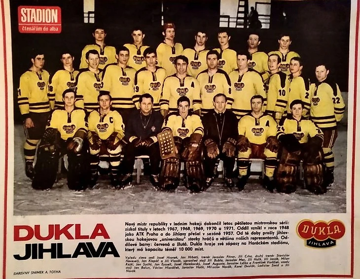 В 1958 году команду возглавил Ярослав Питнер, сам бывший вратарь, который постепенно стал создавать чемпионскую команду из неизвестных молодых хоккеистов. В Карловых Варах Питнер нашел Яна Клапача, в Простееве - Яна Хрбаты. Но еще больше будущих звезд он увидел в соседнем городе Гавличкув-Брод (25 км от Йиглавы), подарившем хоккейному миру братьев Холиков - Ярослава и Иржи - Йозефа Августу и Яна Сухи.