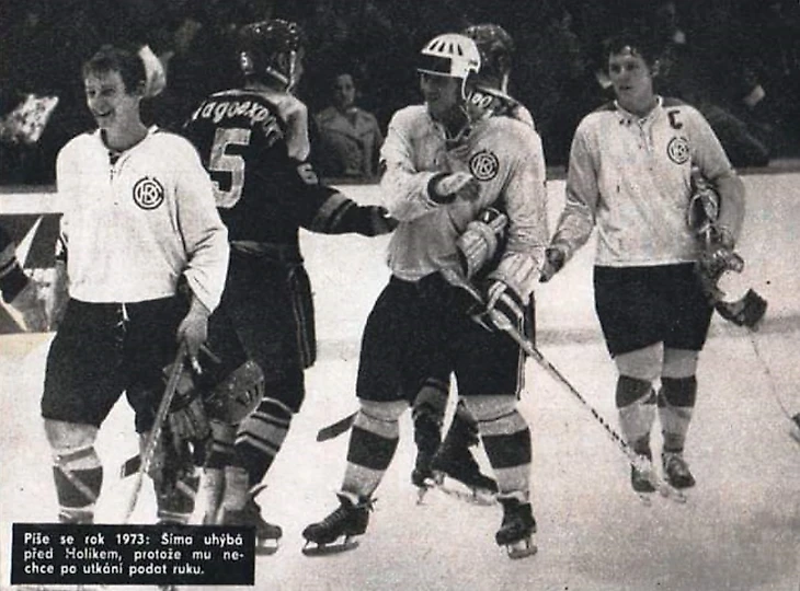31 декабря 1977 года. Давос. Кубок Шпенглера. СКА (Ленинград) - «Дукла» (Йиглава) - 2:0. Послематчевые буллиты за первое место (3:2). Иржи Холик (№ 20) и Алексей Тверизовский