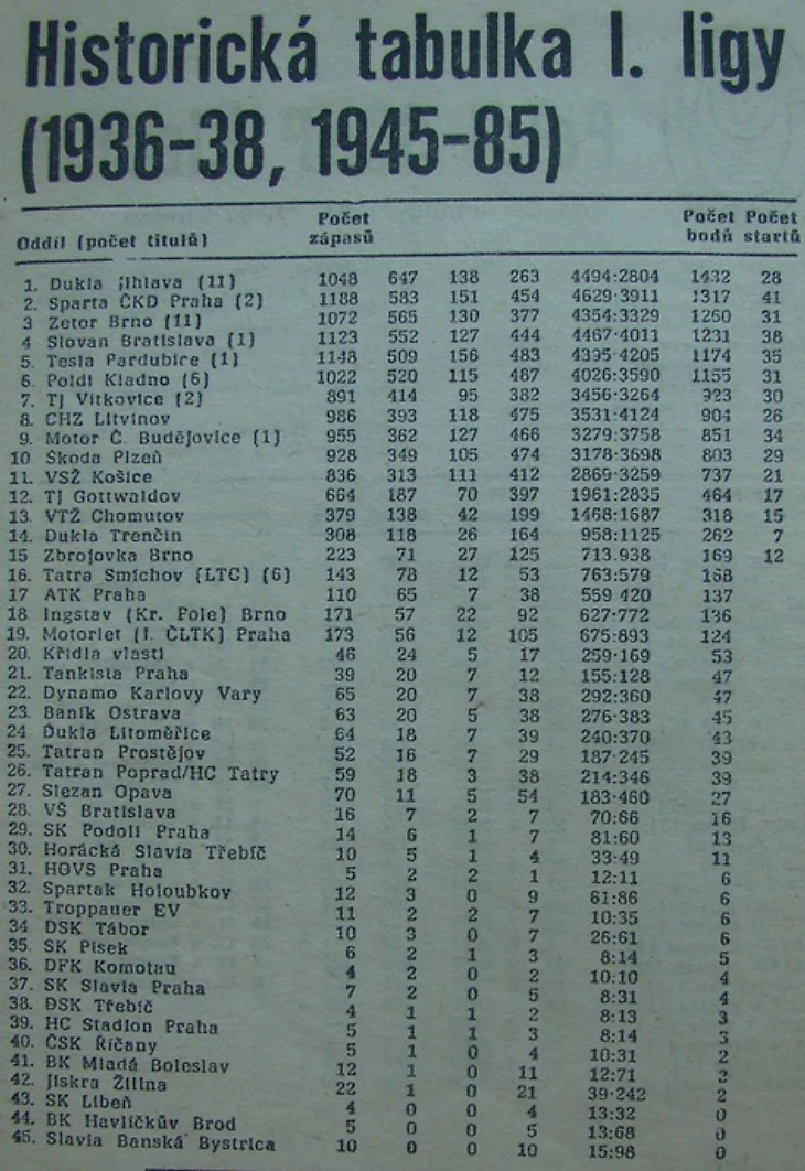 Список команд участниц высшего дивизиона чехословацкого хоккея с 1936 по 1985 год