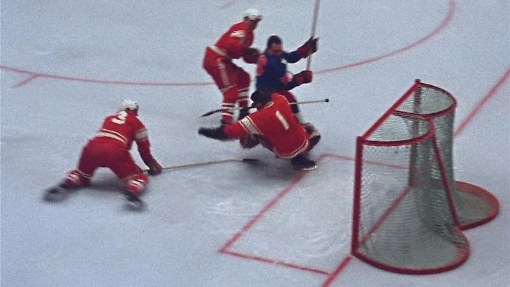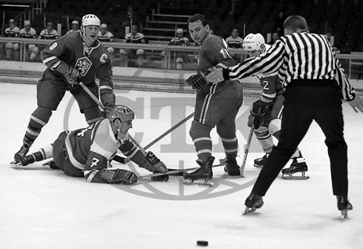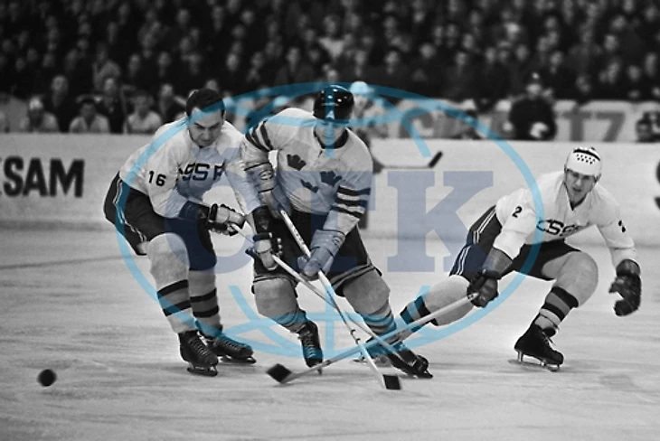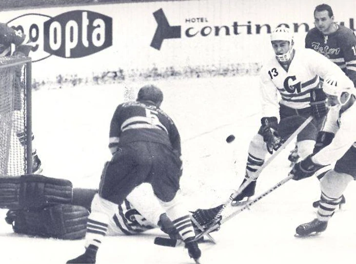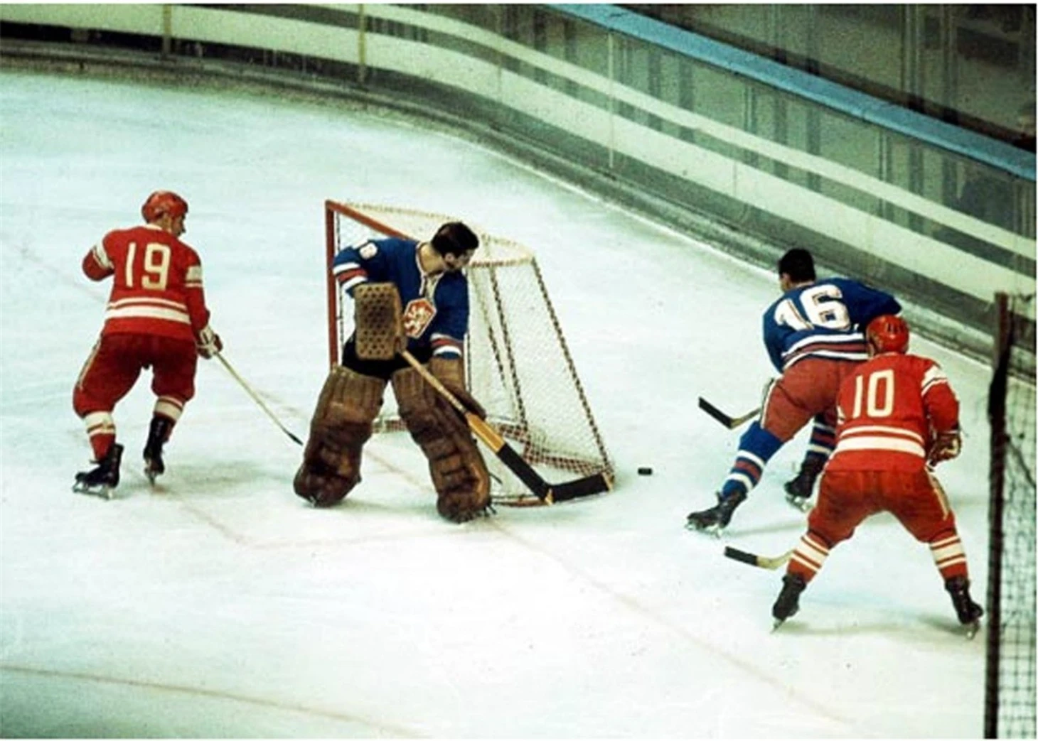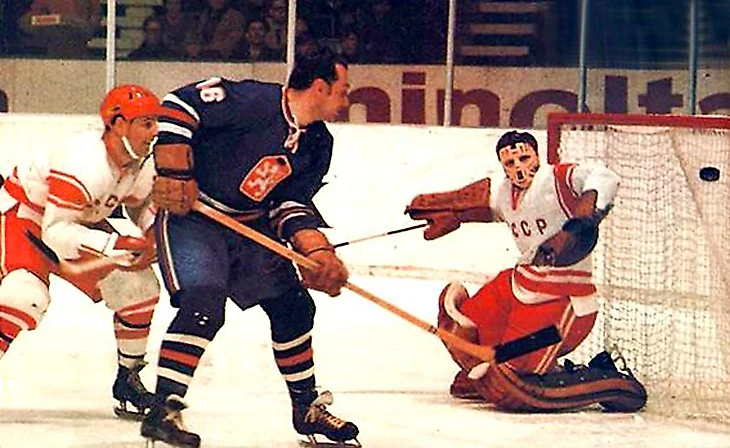 15 февраля 1968 года. Гренобль. Олимпийские игры. СССР - ЧССР - 4:5. Ярослав Иржик в центре