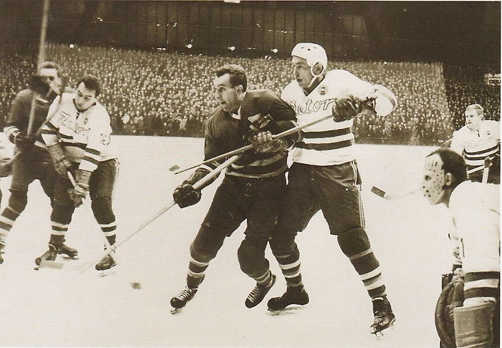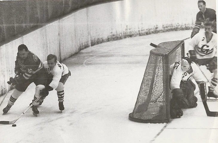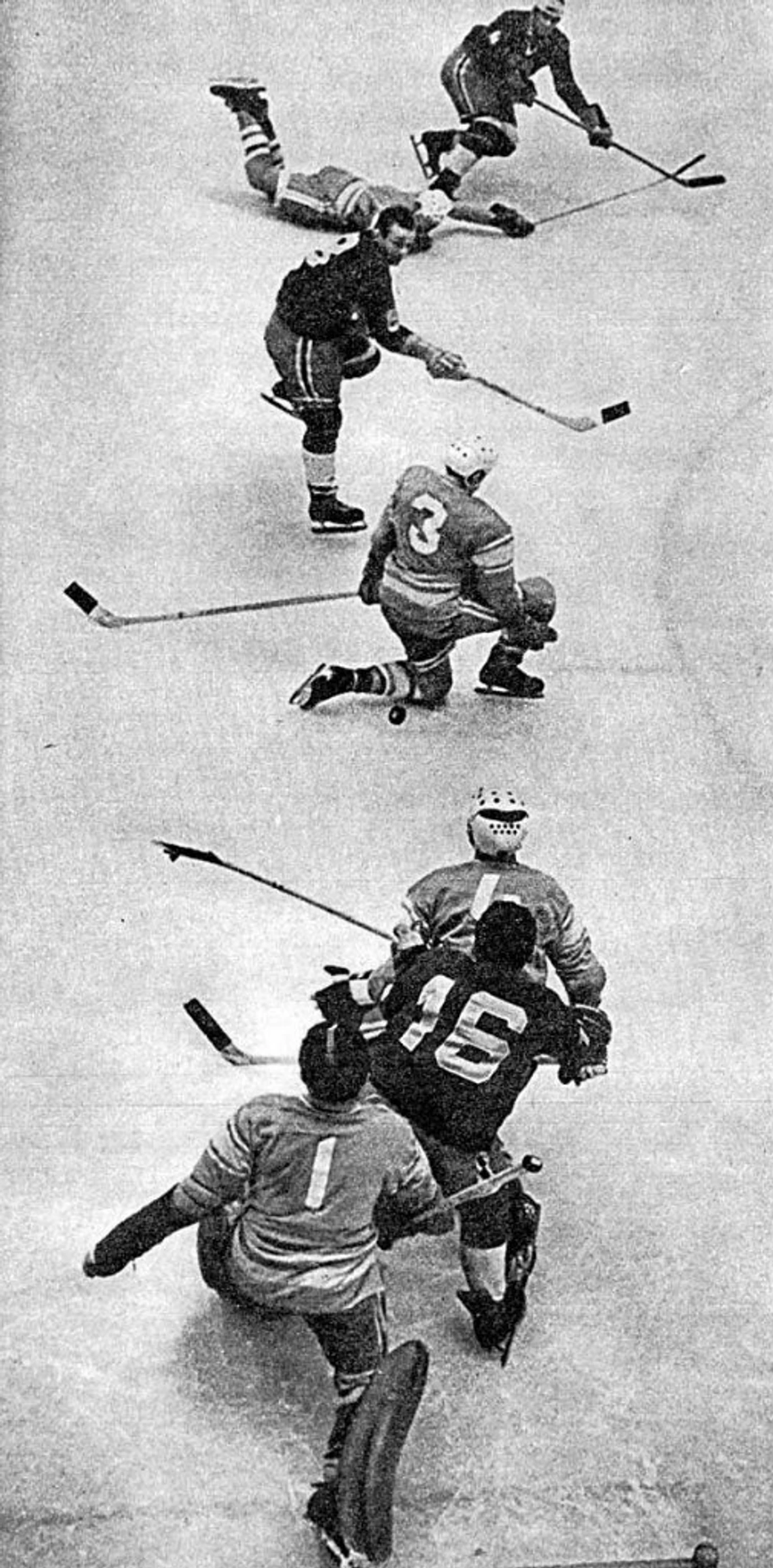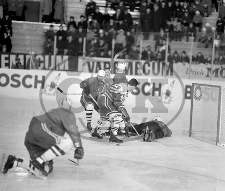 31 января 1964 года. Инсбрук. Олимпийские игры. ЧССР - СССР - 5:7. Ярослав Иржик (№ 16) в борьбе за позицию на пятачке