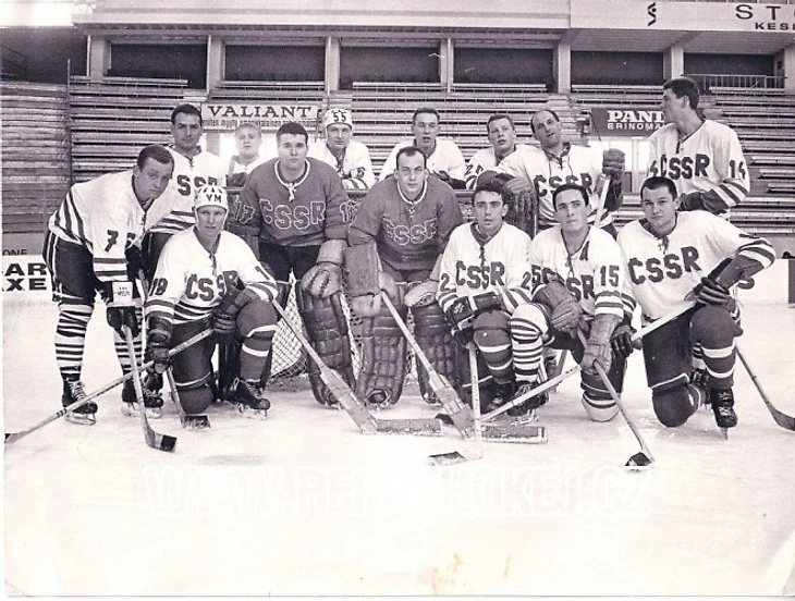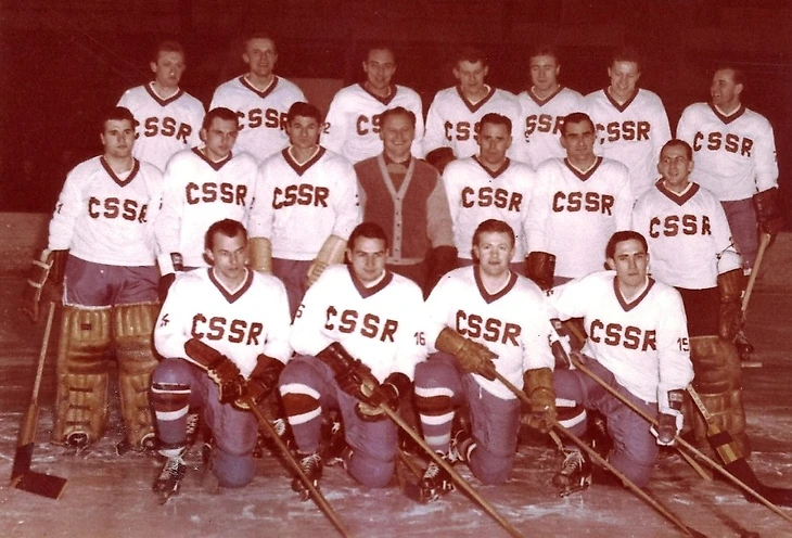 Январь 1964 года. Сборная ЧССР. Ярослав Иржик (№ 16) второй слева в первом ряду
