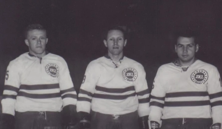 1964/65. ЗКЛ (Брно). Ярослав Иржик (спарва) с партнерами по тройке Франтишеком Шевчиком (слева) и Зденеком Кепаком