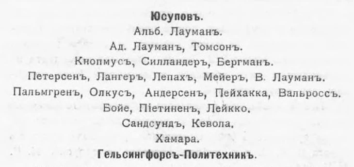 А вот матча между «Юсуповцами» и «Политекникернасом» в марте 1907 года в столице Финляндии в рамках «Зимнего спортивного фестиваля» (по-фински Talviurheilujuhlat Helsingissä - «Фестиваль зимних видов спорта в Хельсинки»), проходившего с 9 по 12 марта и организованного по образцу Северных игр (Nordiska spelen) шведов Йохана Видмарка, Виктора Балька и Кларенса фон Розена, запланировано не было (кстати, Бальк приехал на фестиваль).