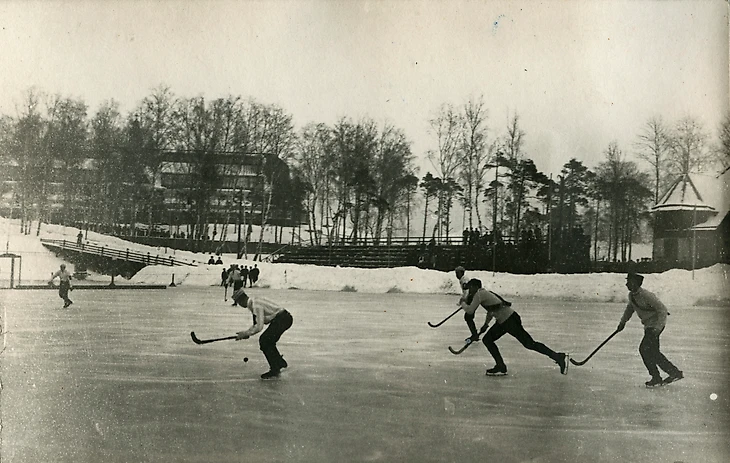 2 февраля 1907 года. Швеция. Стокгольм. Стадион «Идроттспаркен». Европейское турне «Юсуповцев». «Офицерский хоккейный клуб» (Стокгольм) - «Юсупов сад» (С-Петербург) - 3:7 (фото из I тома «Энциклопедии по спорту, гимнастике и жизни на природе», серия «Скандинавская семейная книга», Стокгольм, 1938 год)
