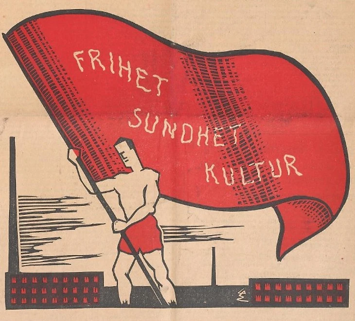 «Свобода. Здоровье. Культура». Рисунок из первомайского номера спортивного еженедельника норвежского AIF «Арбайдеръидрет» № 17 за 28 апреля 1930 года