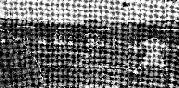 16 сентября 1934 года. Осло. Стадион «Йордаль» / Jordal. Норвегия - Ленинград - 4:2. «Первый тайм международного матча. Шорец ловит хороший удар Кристенсена. На переднем плане Ивин и Вассениус. Завтра вы снова увидите русских виртуозов мяча в действии» (газета «Арбайдерблатет» от 21 сентября 1934 года)