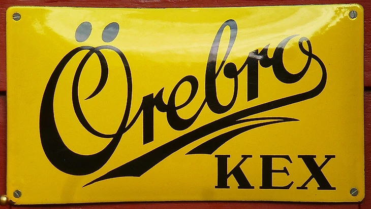 1950-е (?) годы. Табличка с надписью Örebro Kex, принадлежавшая кондитерской фабрике AB Örebro Kexfabrik (sv.wikipedia.org)