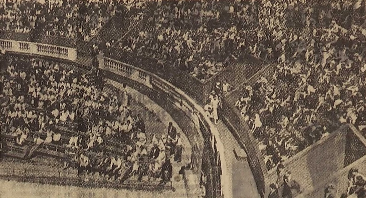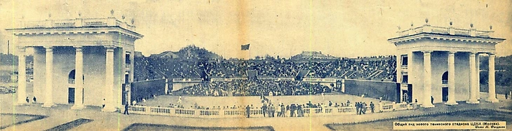 <...> Переходя к основным показателям и составу помещений следует отметить, что емкость стадиона явно недостаточна. Здесь будут проводиться крупнейшие соревнования и уже первое из них (матчи советских теннисистов с французом Анри Коше) показало, что стадион вмещает далеко не всех желающих.