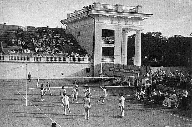 26-30 августа 1938 года. Парк ЦДКА. Теннисный стадион ЦДКА. Первенство СССР по волейболу. Финальный турнир (фото Эммануила Евзерихина)