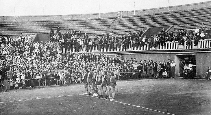 В самом конце 1930-х годов появилась использовать спортивное сооружение для показа спектаклей, представлений и кинофильмов. Летом 1939 года было завершено строительство здания со сценой.