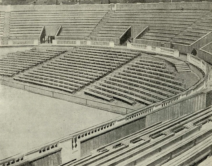 Явно недостаточны размеры обслуживающих помещений, не говоря о том, что при таком первоклассном стадионе должны быть предусмотрены и душевая, и массажная, и все остальные подсобные устройства. В боковых крыльях портиков, фланкирующих трибуны, устроены ложи: судейская, правительственная и т. д. Они так низки и неудачно расположены, что лица, для которых они предназначены, предпочитают ими не пользоваться.