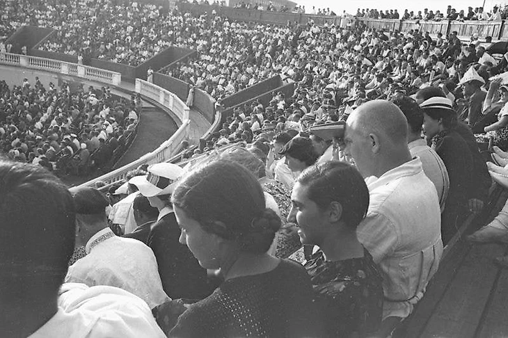 1953 (?) год. Парк ЦДСА. Теннисный стадион – массовый театр ЦДСА («Музейное объединение «Музей Москвы» / goskatalog.ru)