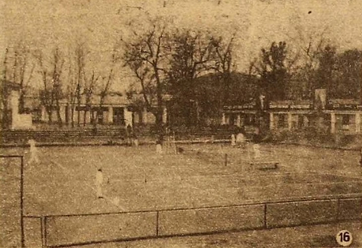 1936 год. Парк ЦДКА. Теннисный стадион ЦДКА (фото А. Вейнберга и А. Чепрунова из газеты «Вечерняя Москва» № 184 от 11 августа 1936 года)