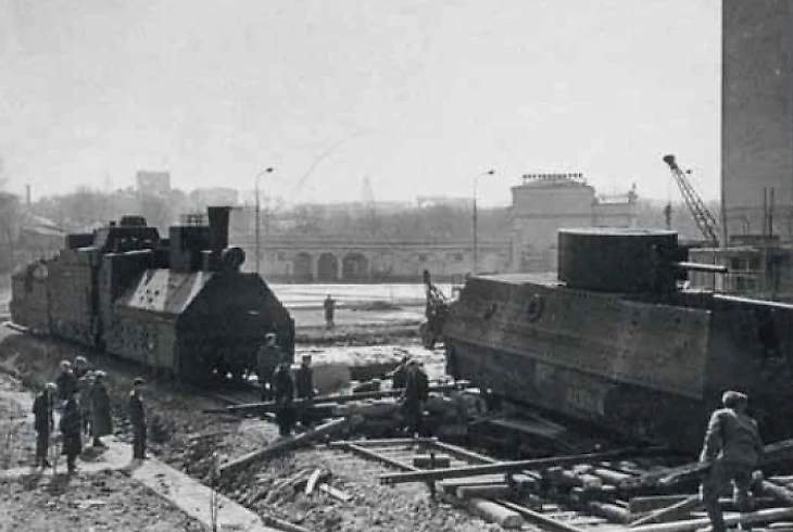 16 апреля 1965 года. Установка бронепоезда у входа в Центральный музей Вооруженных Сил СССР. На дальнем плане перестроенное здание Летнего массового театра (cmaf.ru)