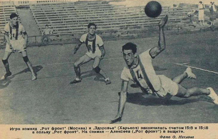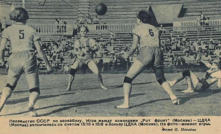 26-30 августа 1938 года. Парк ЦДКА. Теннисный стадион ЦДКА. Первенство СССР по волейболу. Финальный турнир. «Рот Фронт» (Москва) – «Здоровье» (Харьков) – 2:0 (фото О. Неелова из журнала «Физкультура и спорт» № 18 за 1938 год)