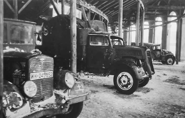 Январь (?) 1942 года. Парк ЦДКА. Под трибунами теннисного стадиона. Снимок сделан во время выставки «Разгром немцев под Москвой», в рамках которой демонстрировались образцы военной техники нацистской Германии (pastvu.com)