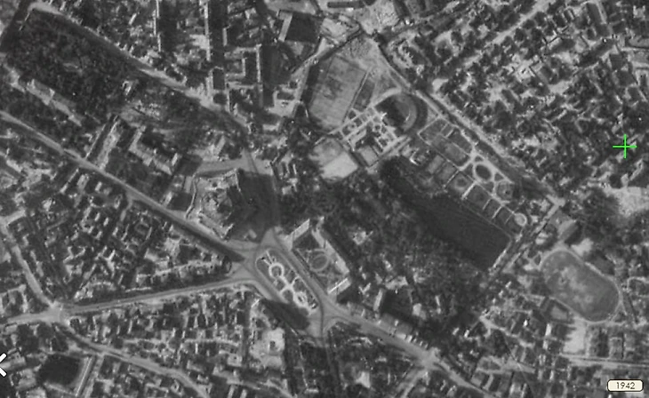 1942 год. Парк ЦДКА и ближайшие окрестности (аэрофотосъемка Люфтваффе / retromap.ru)