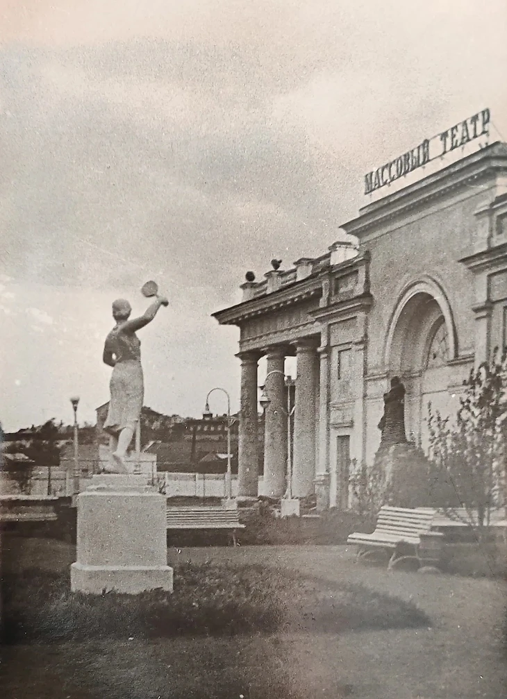 «ЦДКА имеет два эстрадных театра. Один так честно и называется «Эстрадный»*, другой (только что открывшийся на стадионе) называется более ответственно – «Массовый» (газета «Вечерняя Москва» № 150 от 3 июля 1939 года).