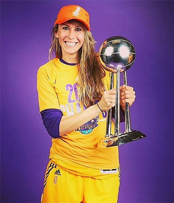 13. Еще одна баскетбольная чемпионка: Евгения Белякова держит трофей женской НБА