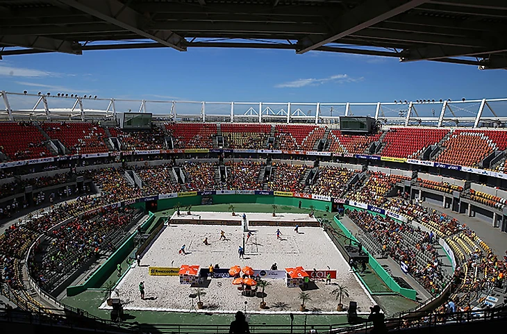 Олимпийскому теннисному центру нашлось применение – пару недель назад арена приняла товарищеский матч... по пляжному полейболу.