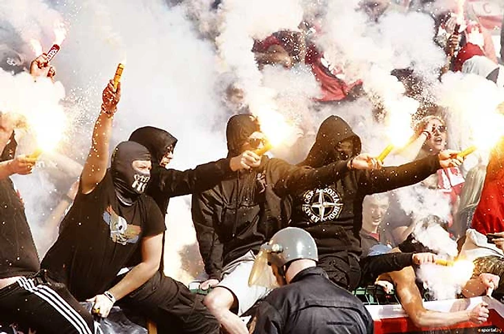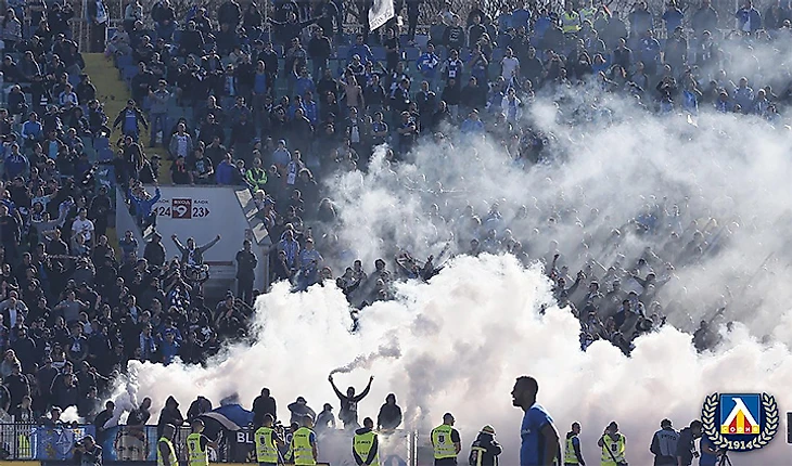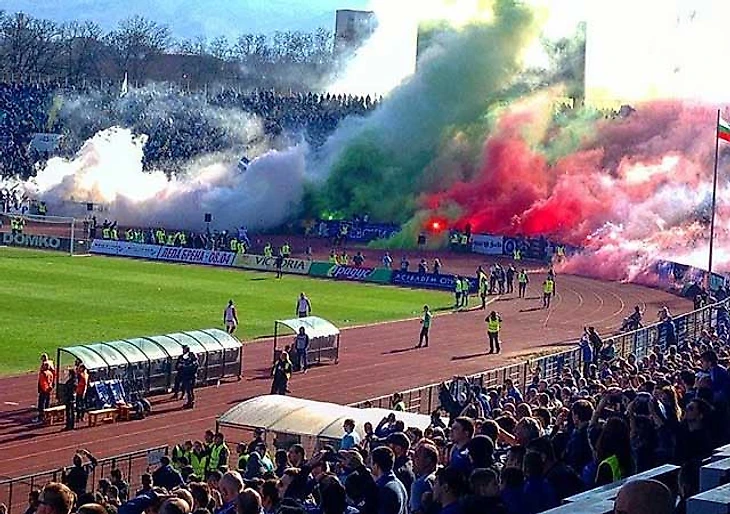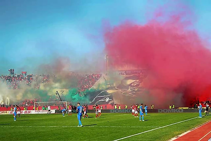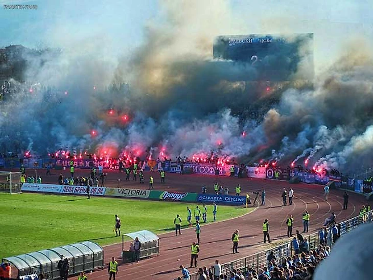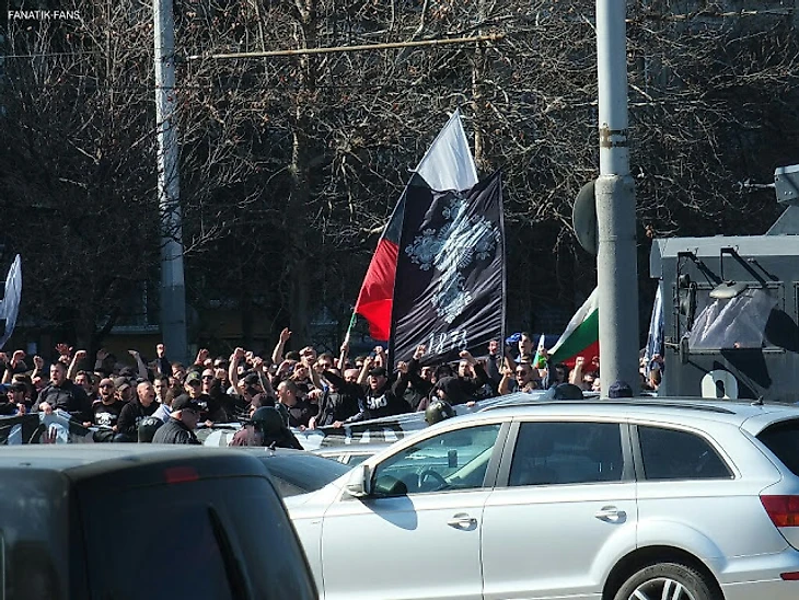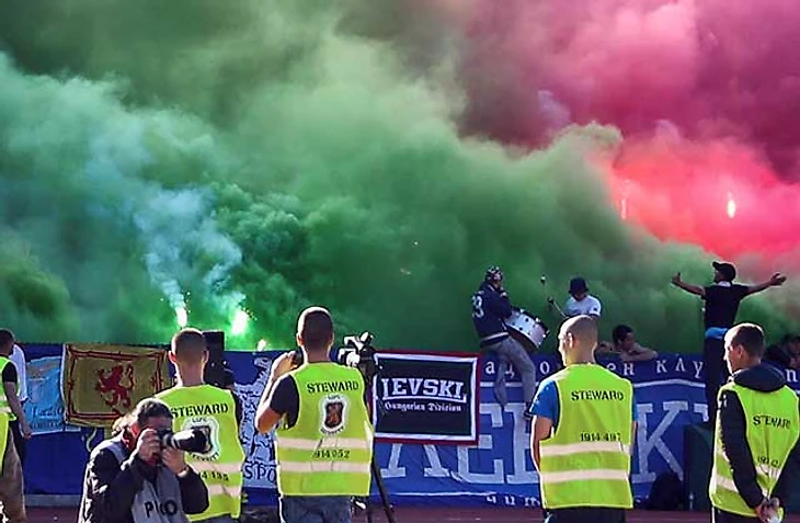 В субботу в Софии полыхало главное болгарское дерби – ЦСКА против «Левски». Фаны обеих команд здорово подготовились и начали задолго до матча на улицах города. Накануне Болгария праздновала день независимости, так что у фанатов обеих команд были болгарские флаги. По сообщениям фанатских сайтов, «Левски» приехали поддержать тифози «Лацио», а их соперников – фаны московского ЦСКА. Вот что из этого получилось: