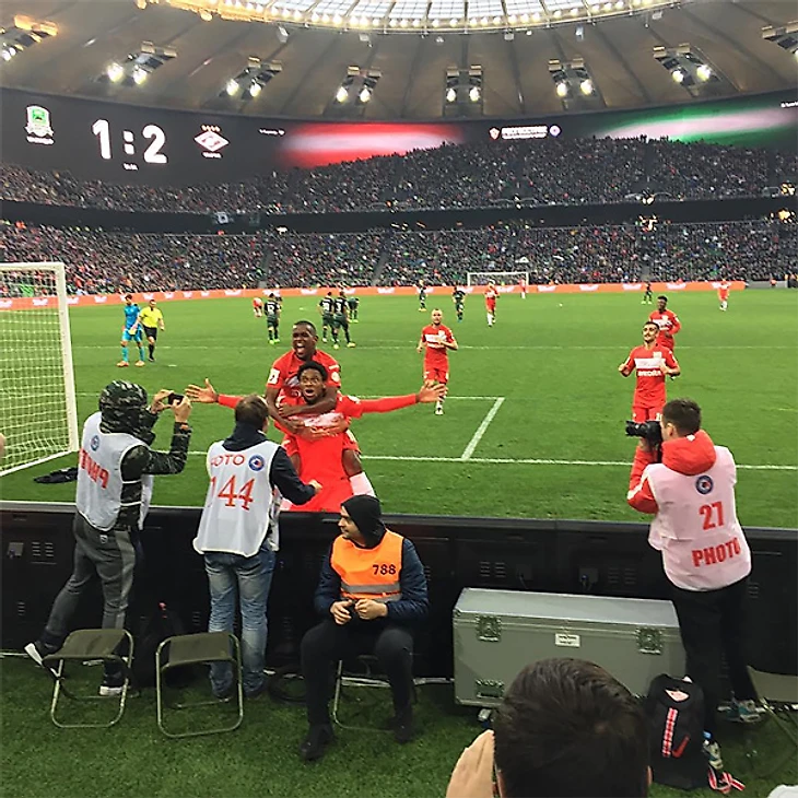 Игра с лидером чемпионата, теплая весенняя погода, селебрити, огромный десант болельщиков «Спартака» (на стадионе было около 10 тысяч) – все это создало особую атмосферу на арене «Краснодара» и вокруг нее.