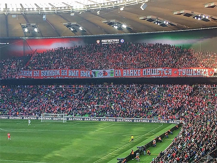 В первом же туре чемпионата России после зимнего перерыва случился один из самых ярких матчей сезона. «Краснодар» и «Спартак» устроили красочное шоу на поле, а их болельщики – на трибунах. Ниже – несколько примеров того, как должен выглядеть крутой российский стадион.