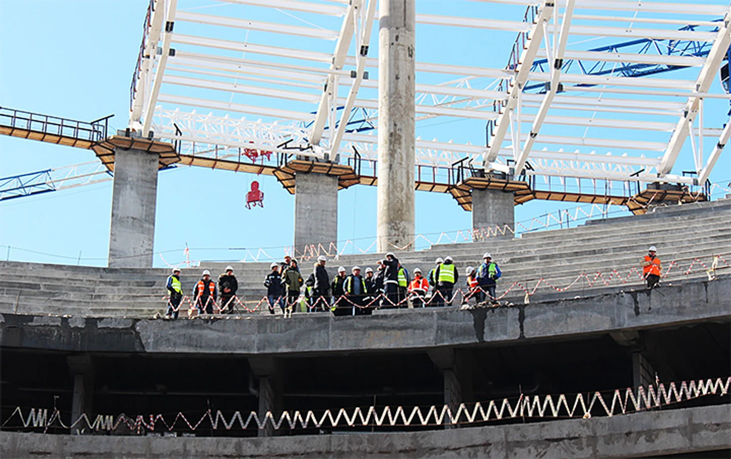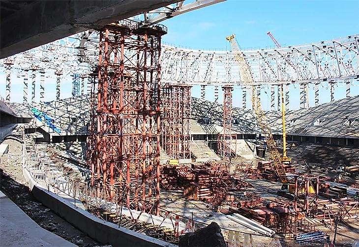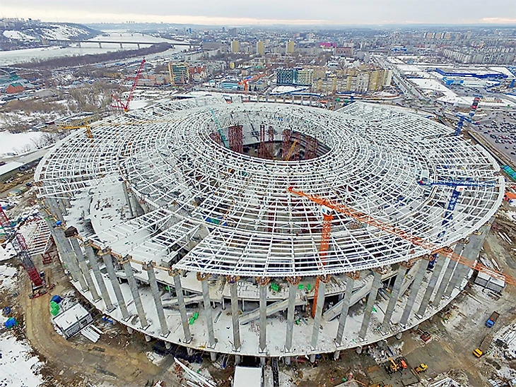 Стадион в Нижнем Новгороде (как и в Волгограде) строит компания Геннадия Тимченко «Стройтрансгаз». Работы начались в 2015 году, стоимость арены в итоге увеличилась до 17 млрд рублей. Сейчас на объекте почти собраны металлоконструкции (90%), вскоре начнутся отделочные работы. Новый стадион будет вмещать 45 тысяч зрителей, его планируют сдать к концу 2017 года.