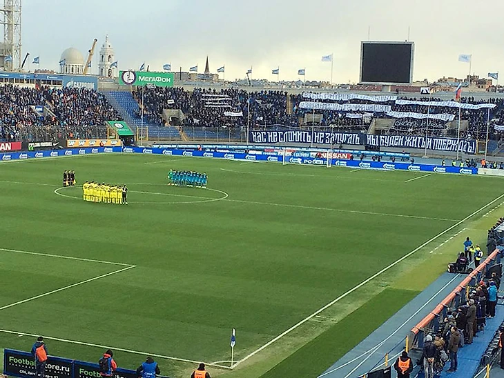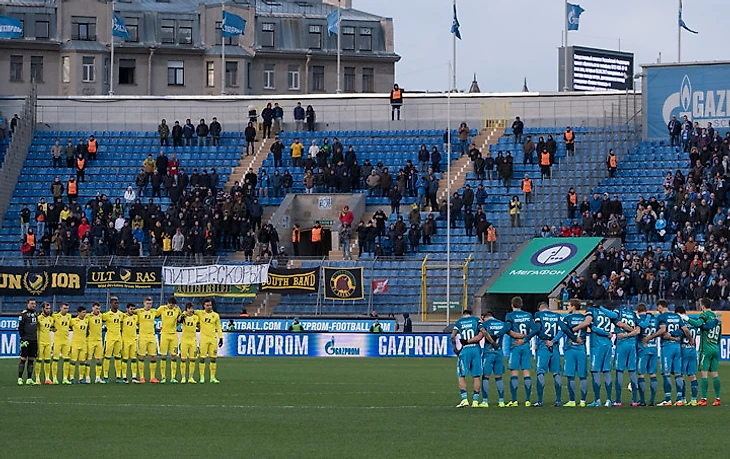 Первые 13 минут матча «Петровский» молчал в память о погибших.