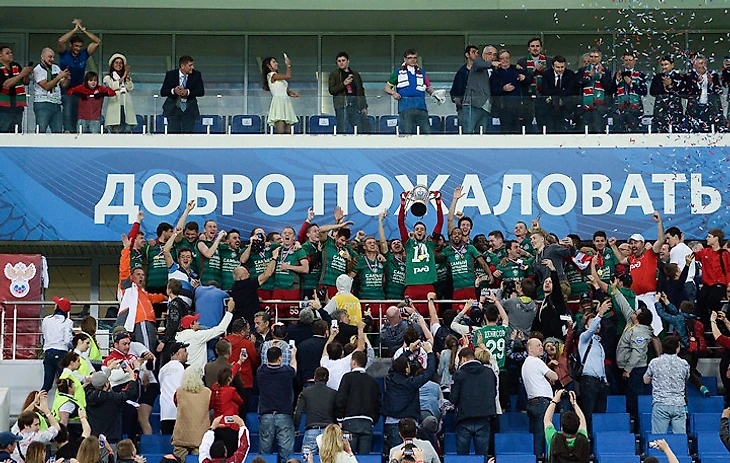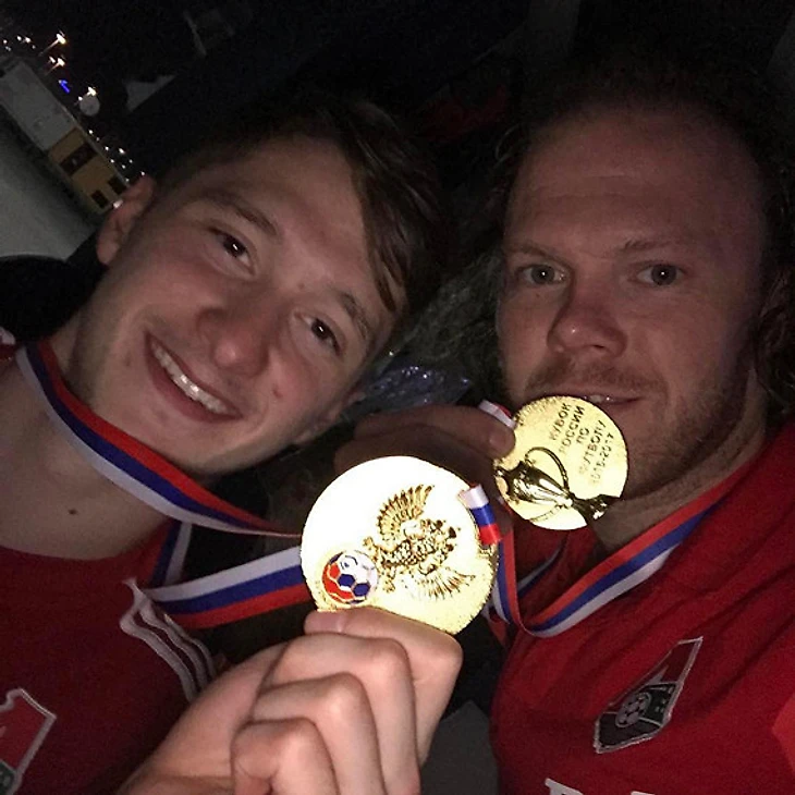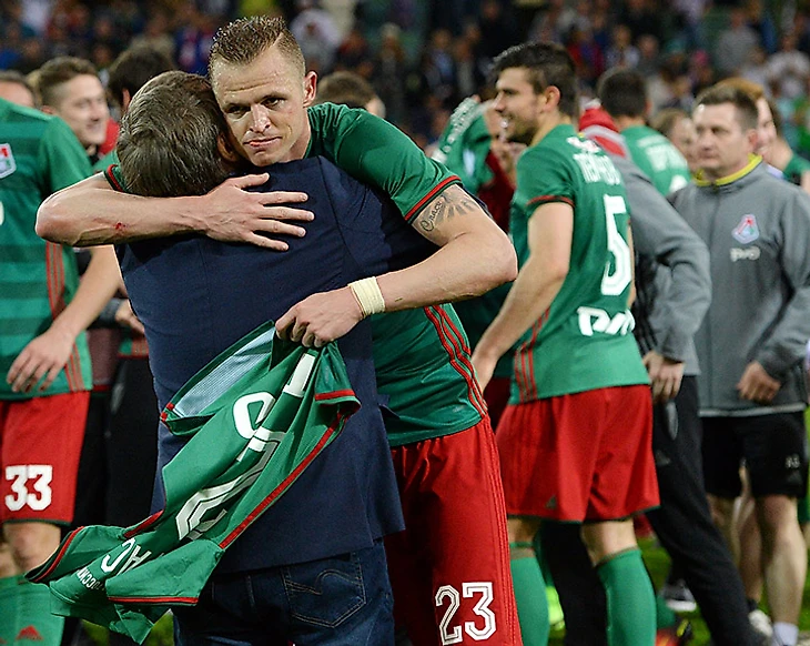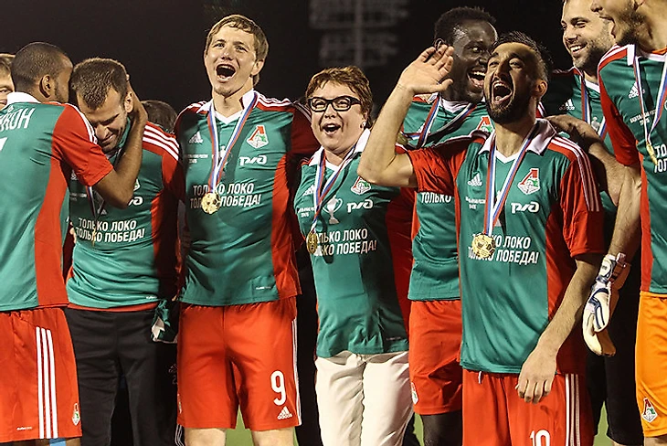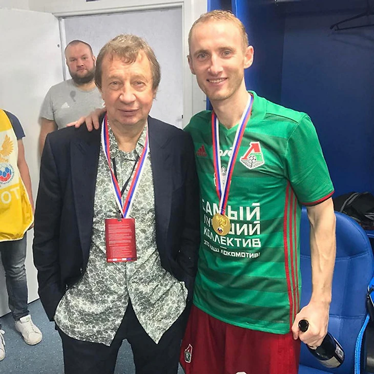 А так «Локомотив» праздновал предыдущую победу в Кубке России – в мае 2015, когда была обыграна «Кубань». Среди победителей – Ольга Смородская и Роман Павлюченко, сегодня ставший звездой микст-зоны.
