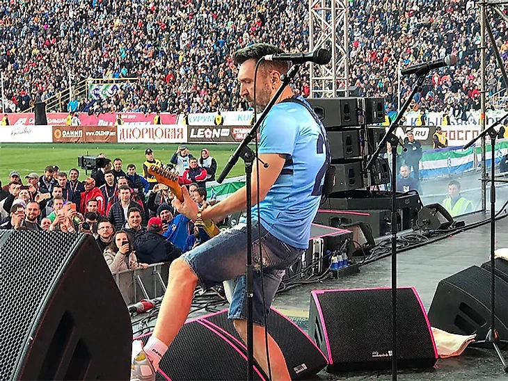 В Самаре после матча «Крылья Советов» – «Зенит» выступила известная российская группа «Лениград». Так самарская команда отметила 75-летие клуба. Идея изначально выглядела странно. «Крылья» борются за выживание в премьер-лиге, а матч с «Зенитом» не из тех, где можно рассчитывать на очки. Так в итоге и получилось, волжане проиграли 1:3 и остались на 14-м месте. Вдобавок билеты на матч из-за концерта стоили гораздо дороже, чем обычно: 900 рублей на трибуну за ворота, 1100 рублей на Восточную трибуну и 1300 рублей на Западную. Детские билеты на игру вообще не продавались. В итоге несмотря на день рождения клуба аншлага на стадионе «Металлург» не было.