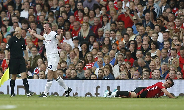 Играли «Манчестер Юнайтед» версии лигочемпионского финала 2008 года (тот, что в Москве, против «Челси» и с падением Терри) и сборная звезд. Каррик был капитаном.