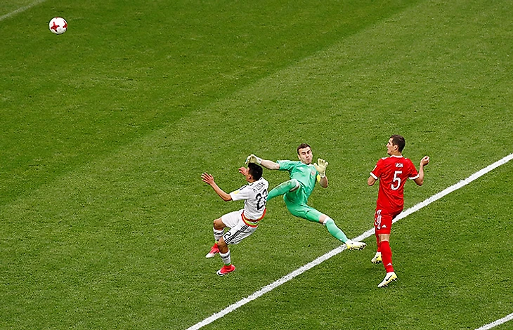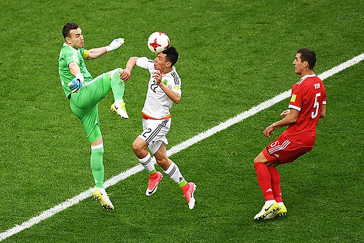 Россия начала второй тайм решающего матча Кубка конфедераций против Мексики очень остро. Но активный навал был внезапно приостановлен обыкновенной атакой Мексики – казалось, неопасной.