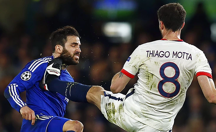 Лига чемпионов-2015/16, «Челси» – «ПСЖ». Тиаго Мотта и Сеск Фабрегас внезапно обменялись хай-киками.