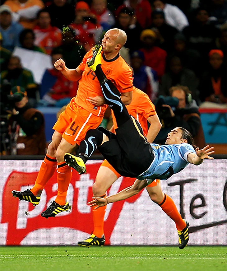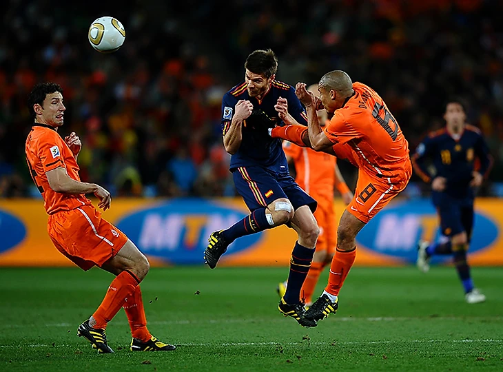 Один из знаменитых кадров финала ЧМ-2010. Голландец Найджел де Йонг вырубает Хаби Алонсо. Испанец, несмотря на сильную боль, продолжил играть в том матче, а де Йонг за грубейший фол получил лишь желтую карточку. Судья Говард Уэбб позже признался, что сильно ошибся в том эпизоде: даже его друг из полиции написал ему, что за такой прыжок ногой в грудь полагается не только красная карточка, но и арест.