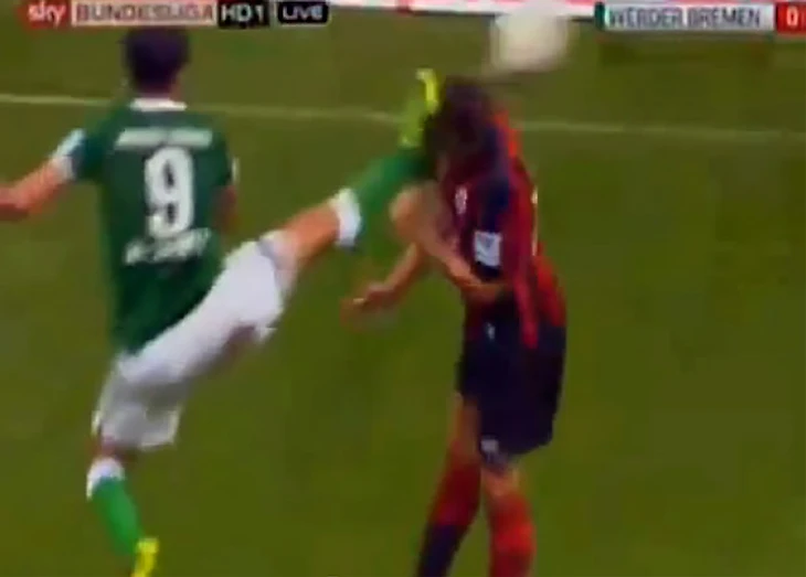Франко Ди Санто, игравший в 2013 году за «Вердер», вообразил себя Златаном. Не повезло защитнику «Айнтрахта» Бастиану Очипке.