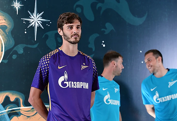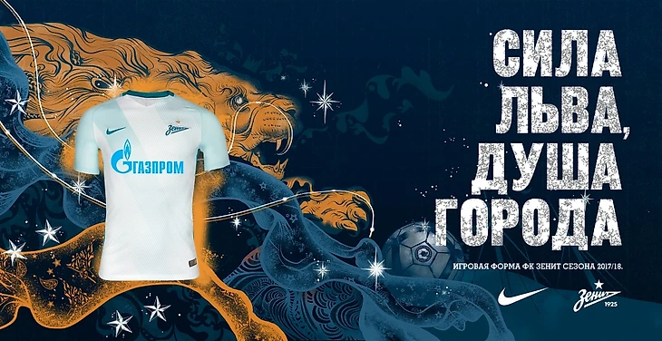 Основной комплект «Зенита» – голубой, гостевой – белый, третий – фиолетовый. На домашнем комплекте увеличенный логотип клуба.