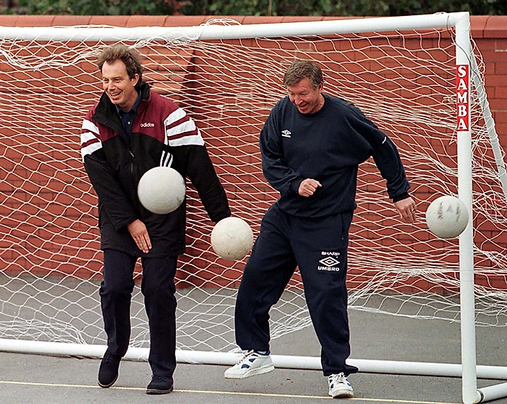 22. Алекс Фергюсон и Тони Блэр в спортивном костюме, который обязательно был у кого-то в классе: