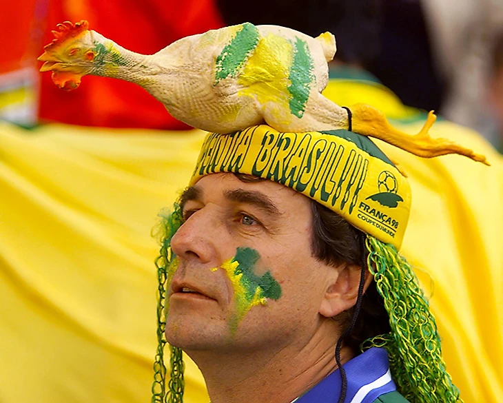 31. Бразильский фанат с курицей на голове. Все нормально: