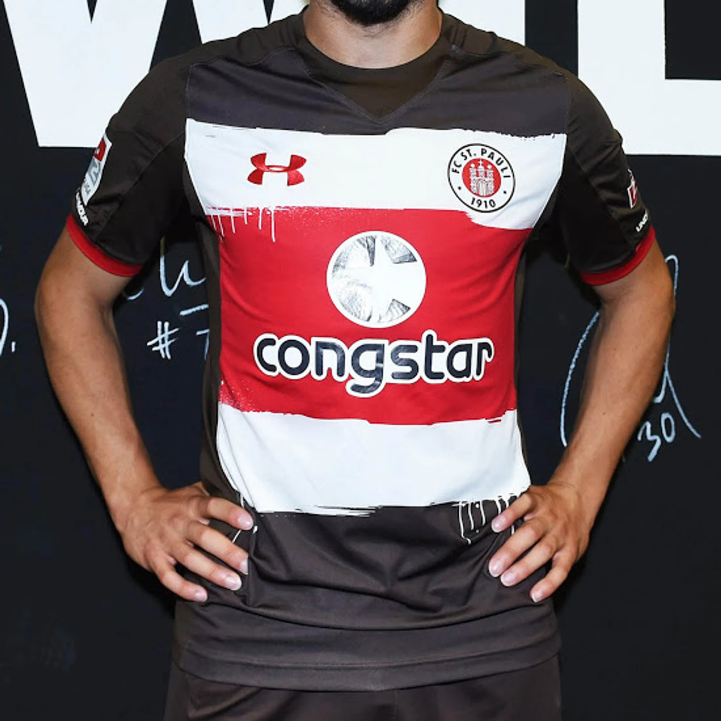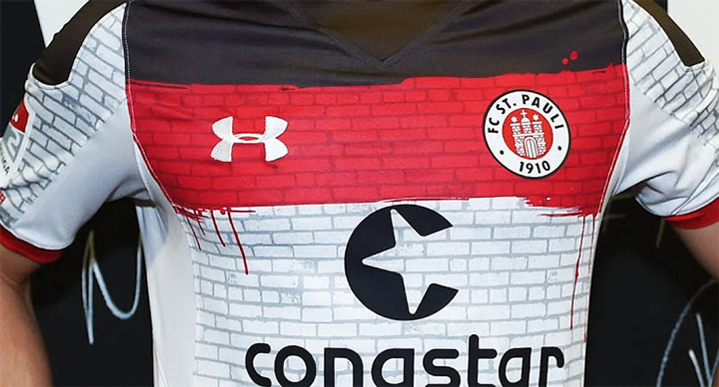 Under Armour для основной формы гамбургского клуба взяли кирпичную стену, побелили, а потом накрасили сверху полосы. Третий комплект просто позаимствовали у военных.