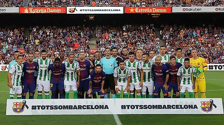 «Барселона» вышла на матч с «Бетисом» в специальных футболках, изготовленных в память о жертвах теракта, произошедшего в четверг. На спинах у футболистах появилась надпись «Барселона» вместо фамилий, а на груди – хештег TotsSomBarcelona («Мы все – Барселона»). Стадион «Камп Ноу» сегодня заполнился на две трети – на игру пришло 56 480 зрителей. По информации клуба многие туристы вернули билеты на матч.