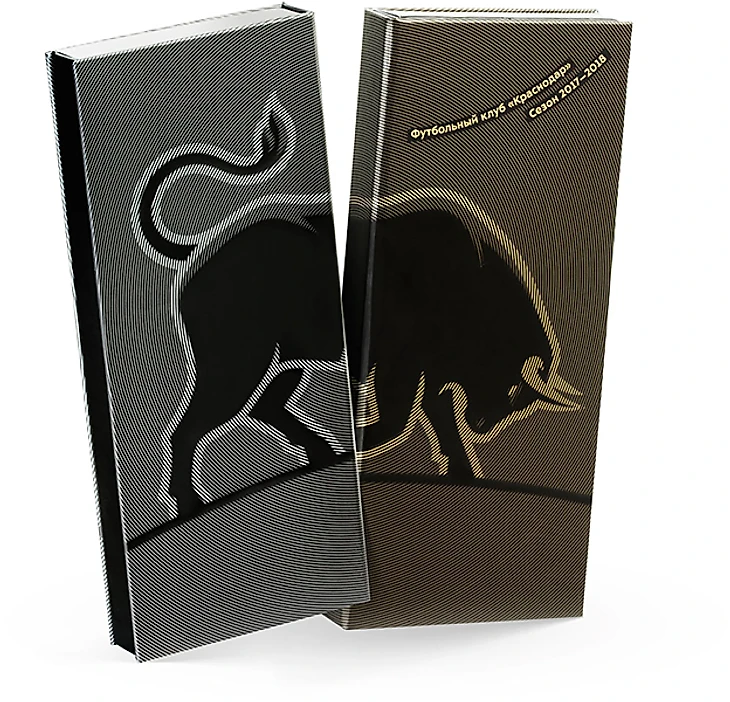 На абонементах координаты печатаются разным кеглем, размер цифр увеличивается от общего к частному — от номера ворот до места на трибуне. Серебряные и золотые карты упаковываются в сувенирные коробки величиной с билет. Поверхность коробок и карт оформлена круговым паттерном. На абонементы паттерн наносится металлизированной краской и смотрится особенно впечатляюще.