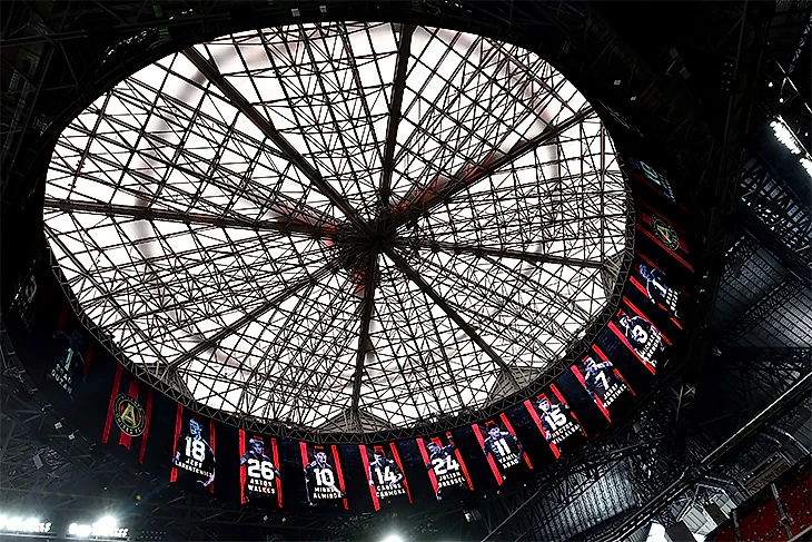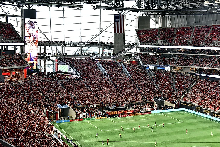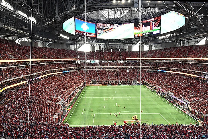 2. «Атланта» изначально рассчитывала на посещаемость в районе 40 тысяч. Новый и шикарный стадион Mercedes-Benz Stadium (за 1,6 миллиарда долларов) должен был вмещать 71 тысячу человек на американском футболе, а на традиционном европейском – только 40. Верхний ярус может закрываться специальными механическими шторами, но в эти выходные так делать не пришлось.